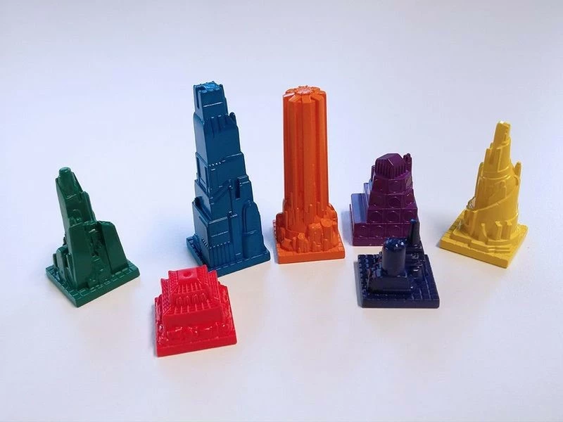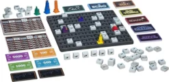 - Plastic board, building tiles, and headquarters! Updated board size, 9×12 space grid with space designations printed on the board.