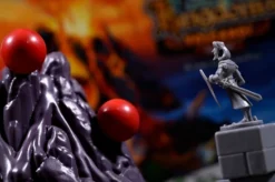 Catapult Feud: Volcano! Expansion introduces a new game mode. Place the Volcano in the middle of the battlefield, at an equal distance between players. Shuffle the Volcano cards and place them in a pile, face down, at the side of the Volcano. At the beginning of each round, the Volcano erupts, shooting random balls of fire at players.