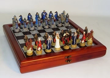 King Arthur’s Court Painted Resin Men 3.25″ King on a 15.5″ Cherry Stained chest Bronze/Silver Board with 1.5″ squares.