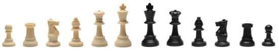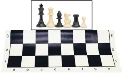 The perfect chess set for tournaments and classrooms looking for a tournament size chess set and board with a carrying bag. It includes our solid plastic black and cream chess pieces with a tournament sized 3.75 inch king. Pieces have green felted bottoms and come packaged in heavy zip lock bags. Our green and white vinyl roll-up board with 2.25 inch squares includes algebraic notation for game analysis. These plastic Staunton chess pieces are a perfect combination of beauty, price and durability. Every set is made of the best quality plastic and displays exquisite design and workmanship. This set meets the World Chess Federation’s (FIDE) height, weight, and proportions standards for tournament play. The total weight of the chess pieces is approximately 1 lb. as described in the product features section. Comes with a roomy black canvas bag with room left for a chess clock.