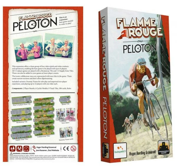 Flamme Rouge: Peloton includes variants for both solo play and for games with up to twelve players, each controlling only one rider.