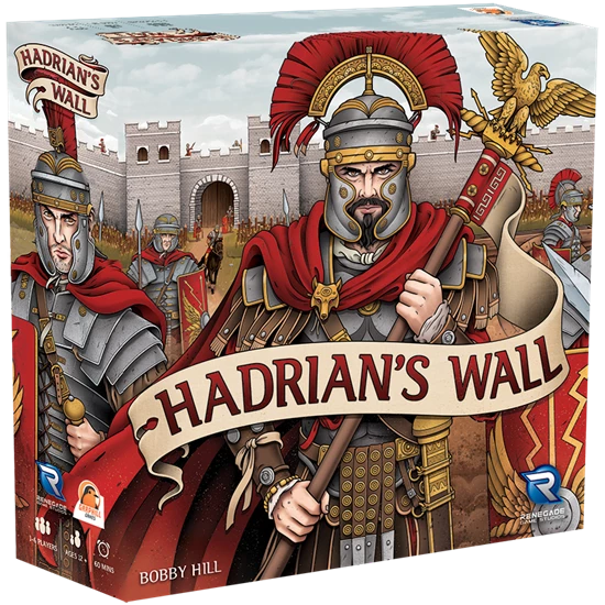 In Hadrian’s Wall, players take on the role of a Roman General, placed in charge of constructing a milecastle and bordering wall. Over 6 years (rounds), players will construct their fort and wall, man the defenses, and attract civilians by building services and providing entertainment – all while defending the honour of the Roman Empire from the warring Picts. The player that can accumulate the most Renown, Piety, Valour, and Discipline, whilst avoiding Disdain, will prove to the Emperor they are the model Roman citizen and be crowned Legatus Legionis!