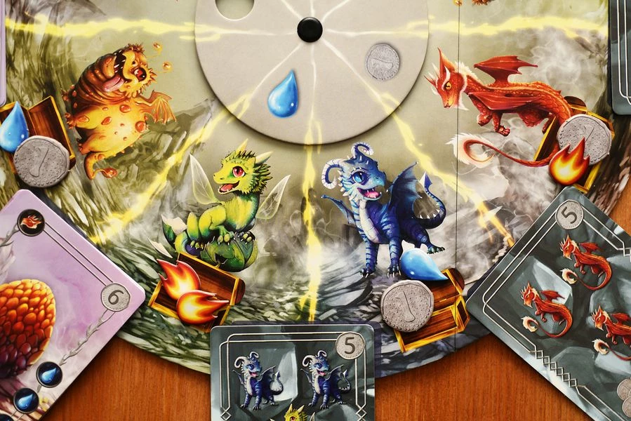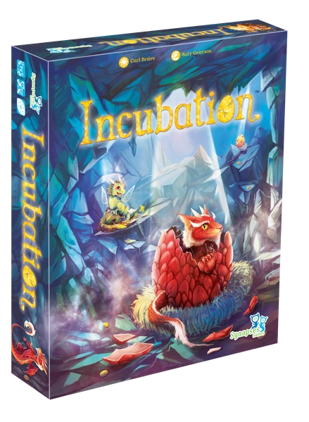 In Incubation, 2-5 players take on the role of entrepreneurial dragon breeders looking to make a fortune by collecting the required resources and feeding them into their special dragon egg incubators to hatch them. There are four different types of dragons, as well as hybrid and mystery eggs. As the dragons begin to emerge from their eggs, players can use them to fulfill objective cards, which earns them coins. The breeder who has earned the most coins through hatched dragon eggs, completed objectives, and collected tokens wins!