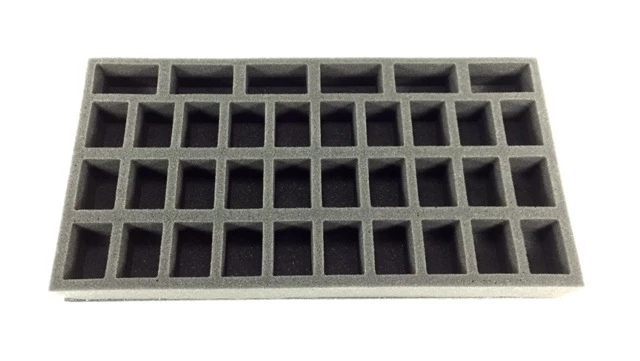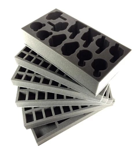 - 2x 1.5 inch (38 mm) thick tray with 30 x 1 1/4 x 1 3/4 inch (31 x 44 mm) cutouts, and 6x 1 1/4 x 2 inch (31 x 50 mm) cut outs.