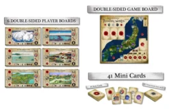 The game is huge, containing over 230 tarot-sized cards, 12 intricate miniatures, hundreds of tokens and is filled with beautiful Ukiyo-e style Japanese art, all digitally remastered to regain the original vibrance of the era.