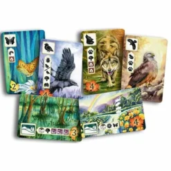 Meadow is an engaging set collection game in which players take turns taking cards from the center board and adding them to hand. Neat design and innovative tableau building model, based on the true connections found in nature, make for a unique, theme driven playing experience. In the end, the player with most points on the cards in their area and most points scored on campfire board wins.