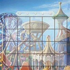 At the end of the game, the owners of the facility come in and award points to the finished themed neighborhoods. These points are awarded based on four criteria: (1) Excitement Level (size of the rides); (2) Parking Lot View (curb appeal to visitors upon arrival); 3. Main Entrance View (attractiveness to patrons waiting in line for their tickets); and 4. Theme sets (number of matched types of attractions in a neighborhood).