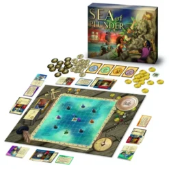 Sea of Plunder is a fun, light strategy game with a treasure hunting theme in which you are a merchant ship sailing across the endless sea, racing to reach mysterious treasure islands while at the same time gathering goods from port cities, dodging pirates, getting pushed around by hurricanes, and stealing cargo from the other merchants/treasure hunters!