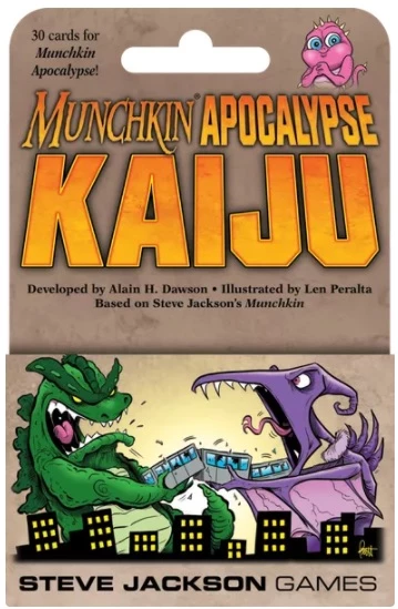 Enjoy nuclear-powered battles, city-stomping showdowns, and off-planet altercations with Munchkin Apocalypse: Kaiju! (Gesundheit.) Get barbecued by Hamera, take a sledgehammer to Rocky Road Dan, and win the day with the help of a Rousing Theme Song and a Small Child in Shorts.