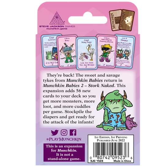 - Expansion deck: 56 new cards for more Munchkin Babies playtime!