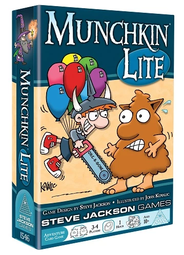 Go down in the dungeon. Fight every monster you meet. Stab your rivals in the back and steal their stuff. Grab the treasure and run! Munchkin Lite is a slimmed-down version of our classic card game, meant for smaller tables and faster games. Kick down the door and you’ll be looting rooms in no time!
