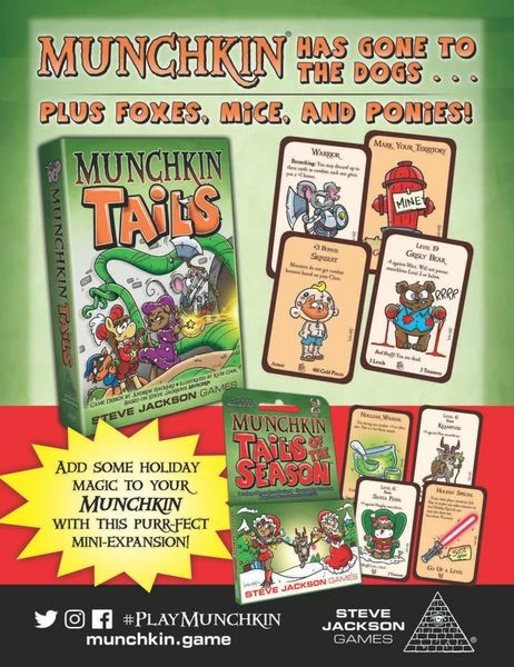 Your newest furry Munchkin friends are back for the holidays! With festive art by Katie Cook, Munchkin Tails of the Season is the purrfect addition to Munchkin Tails (or any other Munchkin game that needs a dose of Christmas magic)!