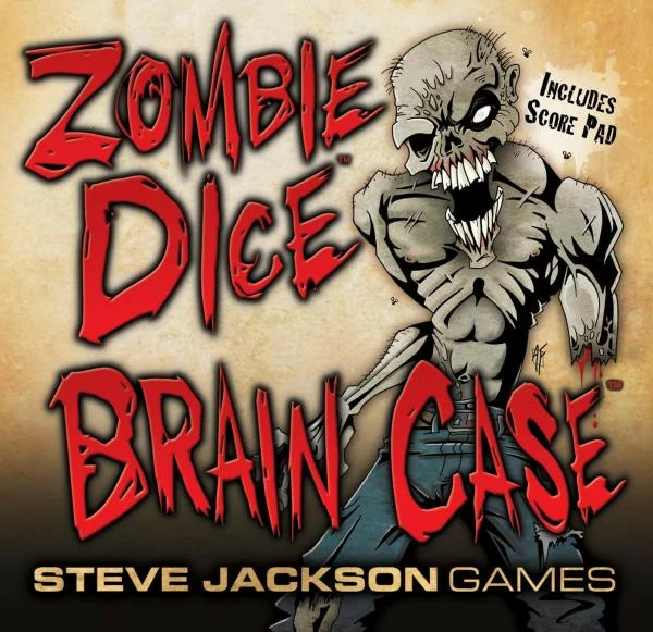 designed the Zombie Dice Brain Case, a plastic dice cup with a screw-on lid ringed with 13 braaaaaaaiiiins. The Brain Case comes with a custom score pad so you don’t have to waste your own