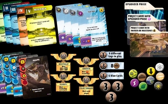 Some new project and corporation cards allow players to upgrade their phase cards. Each phase card has two different version that players choose from when they upgrade them. The upgrade gives the player a better bonus when they choose that phase.